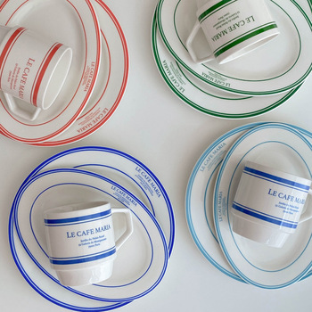 Lelyi Creative Light Blue Korean Weekend Vajilla de cerámica Ins Simple Letter Plate Coffee Cup