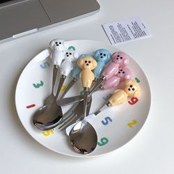 Set di coltelli, forchetta e cucchiaio da cucciolo di orsacchiotto coreano Set di posate in acciaio inossidabile 304 di colore carino