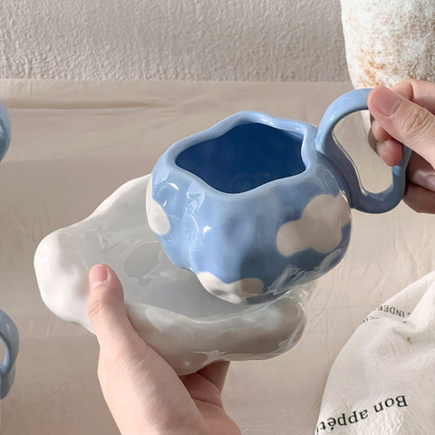 Set di tazze da caffè in ceramica e piattino da tè pomeridiano creativo con nuvole dipinte a mano carine e calde