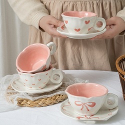 Tazza di caffè disegnata a mano creativa più venduta Lelyi in ceramica tazza e piattino con fiocco a cuore ragazza carina