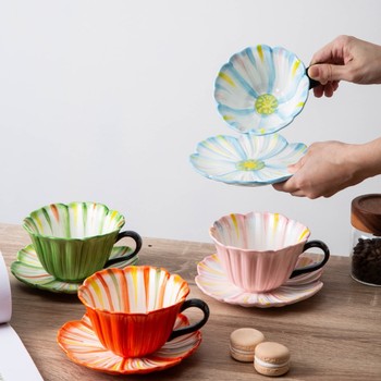Lelyi עתיק צבוע גביע קרמיקה פסים בצורת פרח קריאטיבי קפה וצבר
