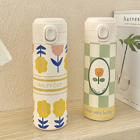 Lelyi INS Cute Cartoon Tulip Graffiti Thermos Cup High-value Creative Fresh Stainless Steel Bottle