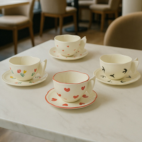 Lelyi INS-style Retro High-aesthetic Hand-painted Ceramic Cup and Saucer Creative Fresh and Delicate Coffee Mug