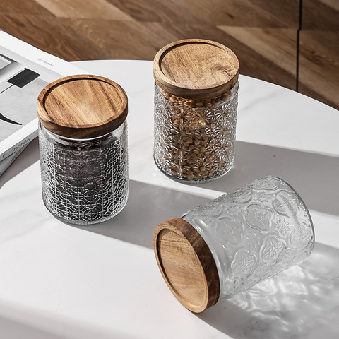 Lelyi日本复古压花玻璃密封罐储罐零食干果罐瓶