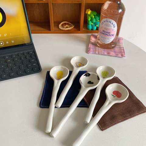 乐利手绘陶瓷勺子Ins家用餐具批发石器餐具套装